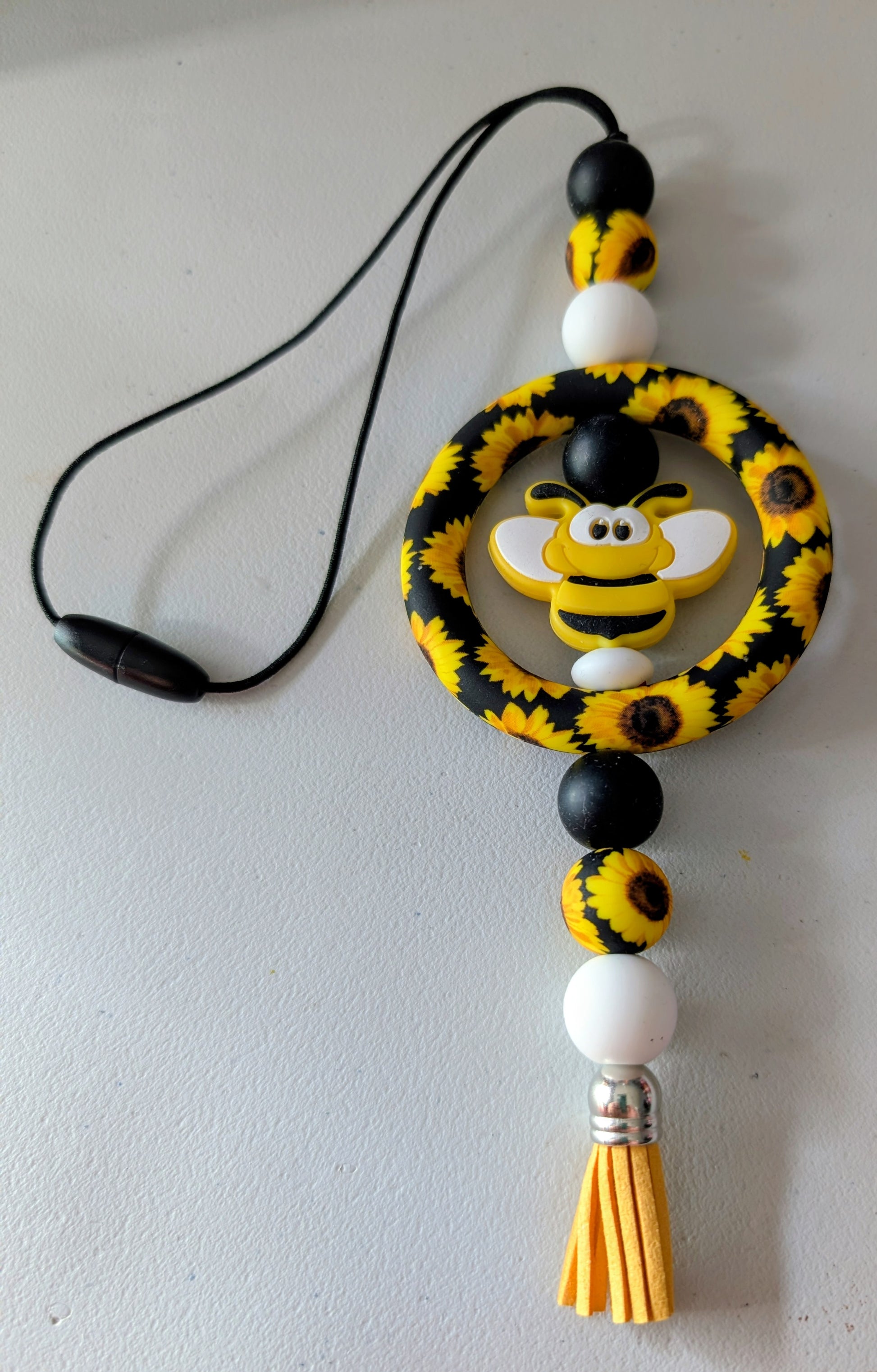 Bee Grab bag includes all Bee themed items: 16oz Glass cup with Bamboo Lid and straw, Pen, Keychain and Car charm.