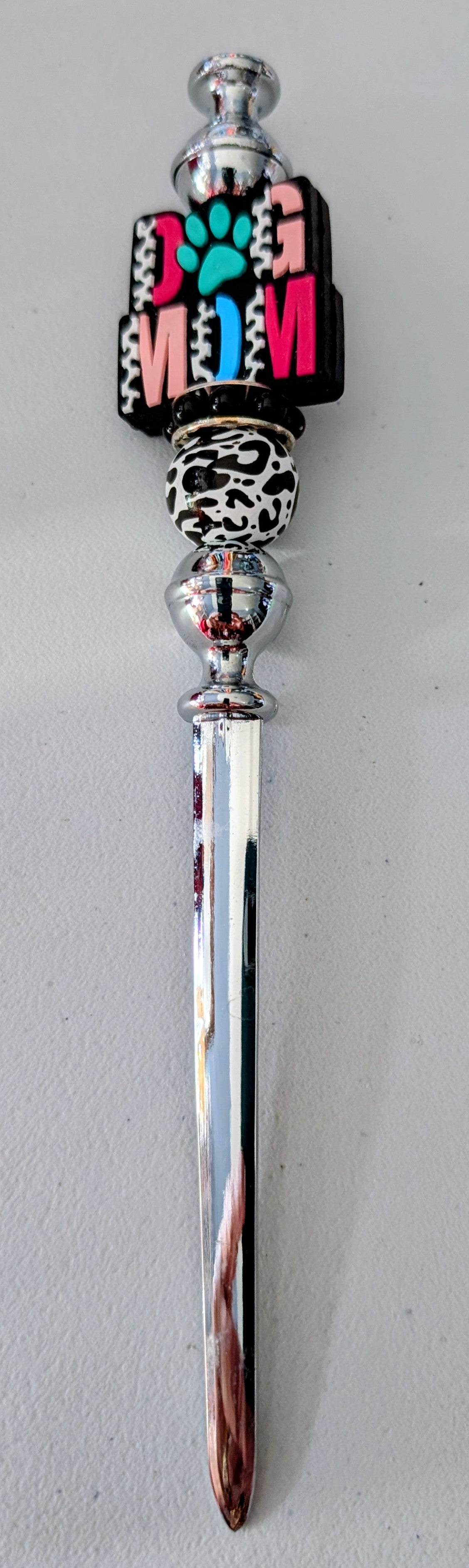 Dog Mom Grab bag includes all Dog Mom themed items: 16oz Glass Cup with Bamboo Lid and Straw, Letter Opener, Keychain and Phone Strap.