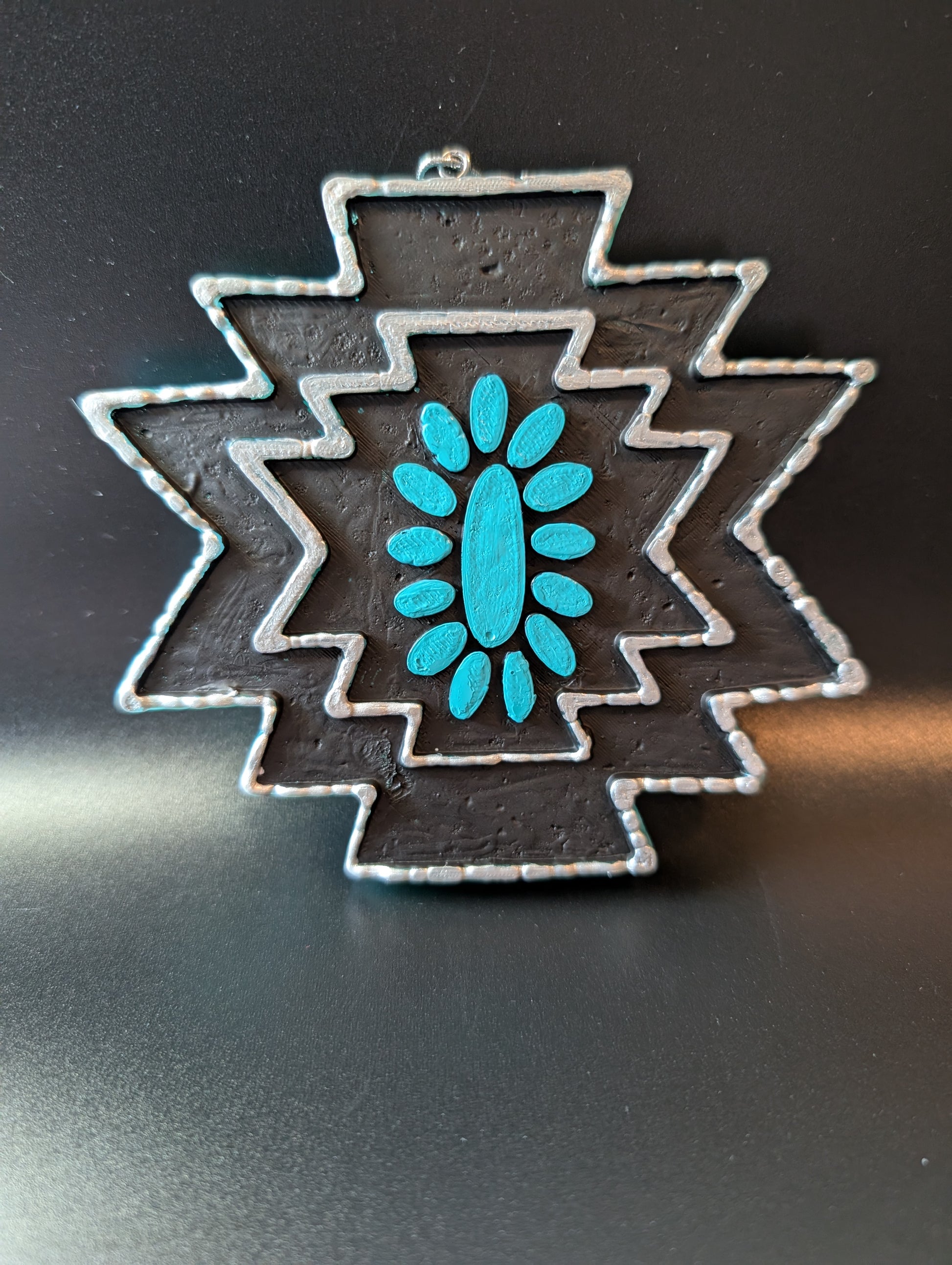 Teal and Black Painted Concho Shaped Freshie that is Ready to ship. Value $12.00