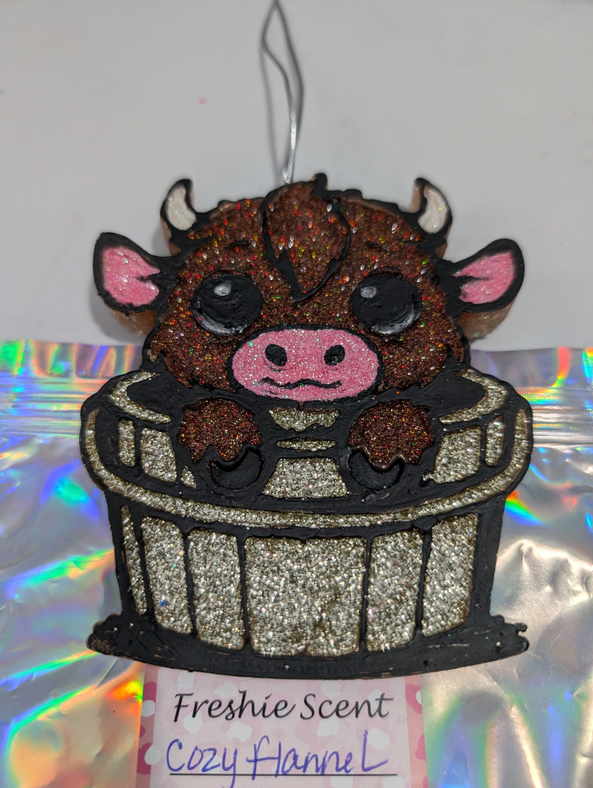 Highland cow inside a washtub design in the scent of "Cozy Flannel"