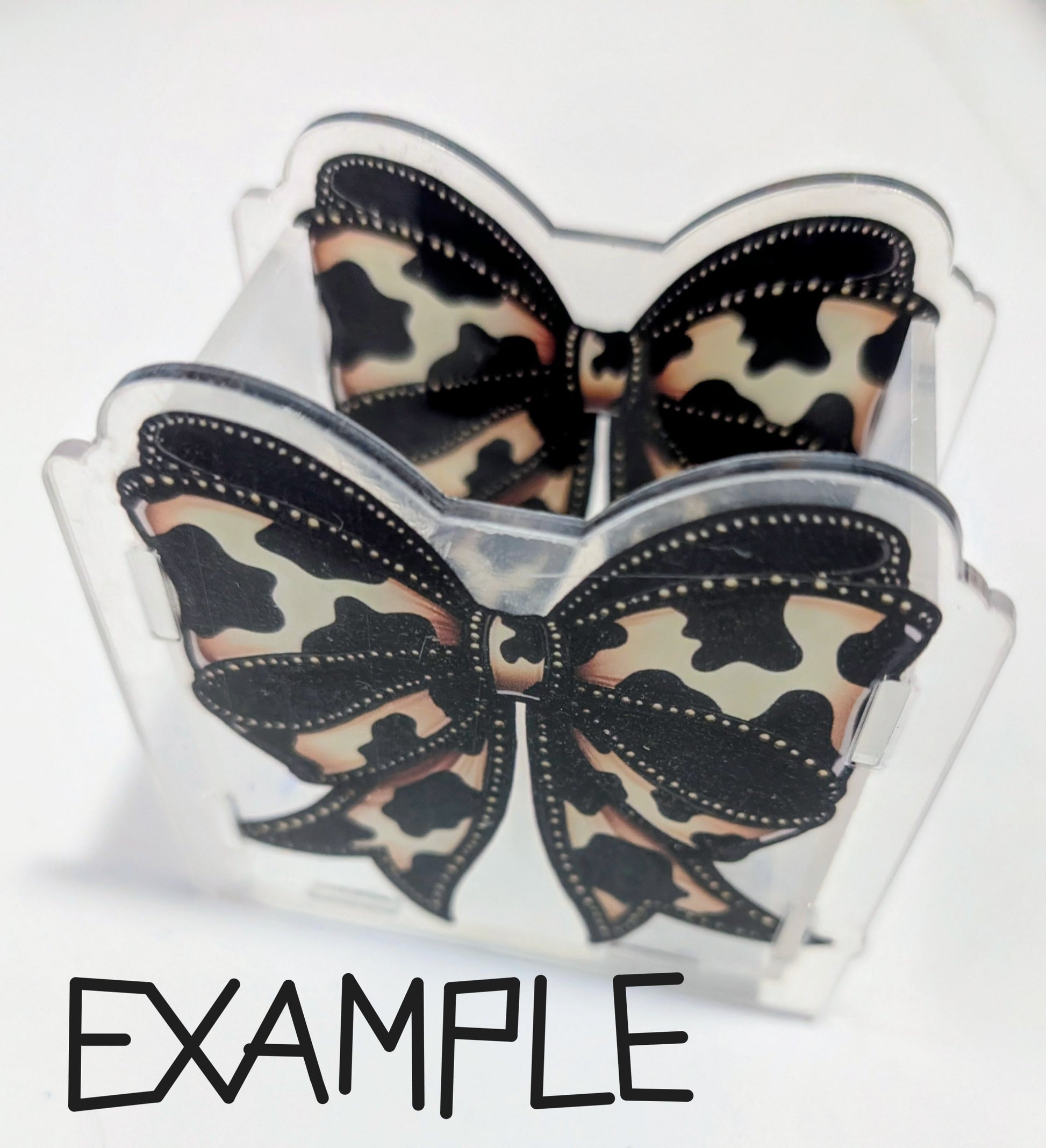 Pen box with Nurse and Black Polka Dot Bow design. Pen box has design on front and back sides and three clear panels for sides and bottom. Use for pens, brushes or other items.