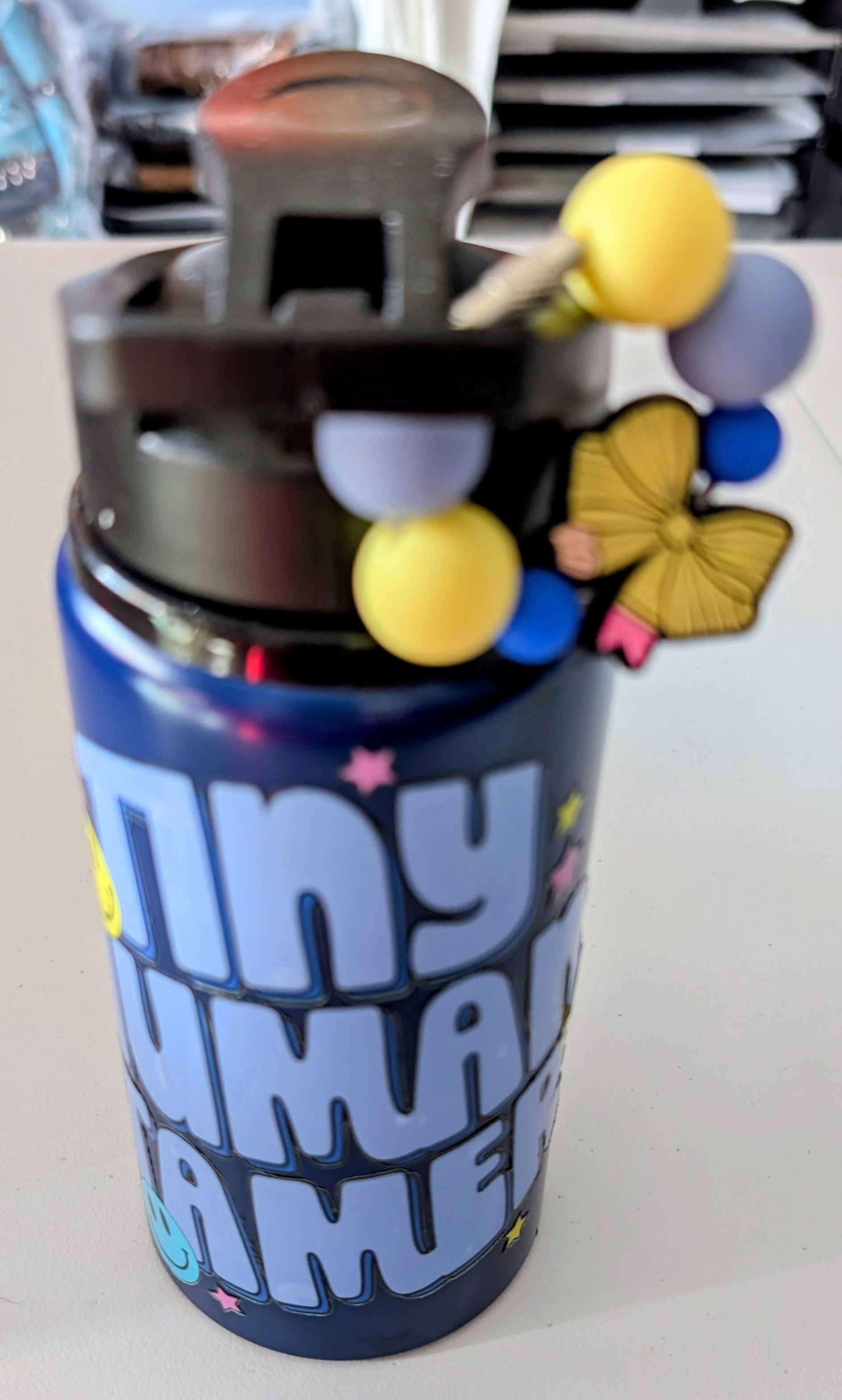 Teacher Grab bag includes all Teacher themed items: 16oz Stainless Steel Insulated Cup, Cup Charm, Keychain and Pen