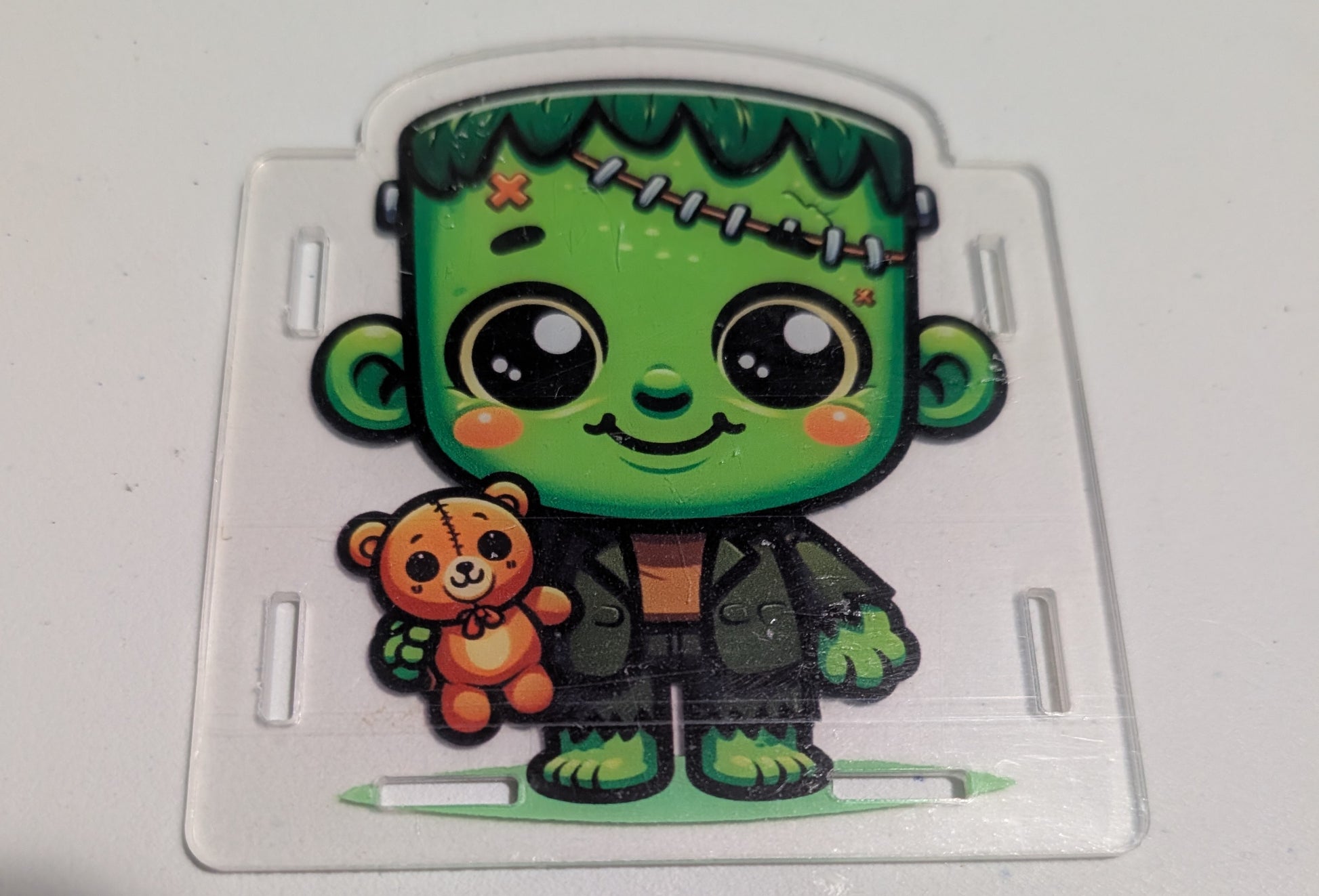 Pen box with Baby Frankie with Bear design. Pen box has design on front and back sides and three clear panels for sides and bottom. Use for pens, brushes or other items.